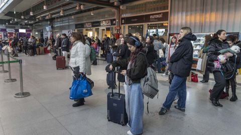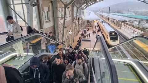 09 feb 2026 . Actualizado a las 21:40 h.Entre los usuarios de la estación de Santiago se respiraba este lunes una mezcla de tranquilidad y resignación ante la perspectiva de lo que iban a ser tres días consecutivos de huelga de los maquinistas de Renfe, si bien finalmente, tras el acuerdo con los sindicatos, se limitó a una sola jornada. Entre esos pasajeros que aguardaban la llegada de su tren había a primera hora numerosos estudiantes y trabajadores que tenían como destino Vigo y A Coruña, pero también algunos con la intención de acudir a clase en Vilagarcía o Pontevedra. María Lorenzo, estudiante en la Facultade de Belas Artes de Pontevedra, recibió un mensaje en la aplicación de Renfe informando del paro. «Como tengo clases por la tarde, voy con tiempo. No estoy muy afectada por la huelga. Me organizo bien», explicó. En cambio, Sofía Pérez, que debería estar ya en Vigo para trabajar, aceptaba la situación con paciencia. «Llegaré una hora tarde a trabajar, pero es lo que hay», comentaba cuando, pasadas las 9.00 horas, entraba en la estación el tren que debía llegar a las 8.33.