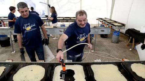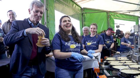 Dulces o saladas, incluso sin gluten, las filloas pudieron degustarse de todas las formas posibles. Pero al trajín de las máquinas filloeiras, capaces de elaborar más de 2.000 cada hora, lo acompañó la música y los Xenerais da Ulla, que desfilaron por Boqueixón. Emilio José de la Iglesia Lema, vecino de Lestedo y director general del gabinete técnico de la Presidencia de la Xunta, protagonizó el pregón.
