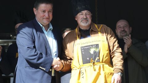 De comandar la ceremonia de imposición de los Mandís de Honra 2026 se encargó el regidor local, Ovidio Rodeiro. Se los enfundaron el pregonero; el presidente de la Xunta, Alfonso Rueda; su conselleiro de Cultura, José López; el director de la ONCE en Santiago, José Antonio Riveiro; el presidente de la Asociación de Festexos San Bieito de Sergude, José Manuel Santos; y el dirigente de la Asociación de Carrozas do San Cidre, Alejandro Pena.
