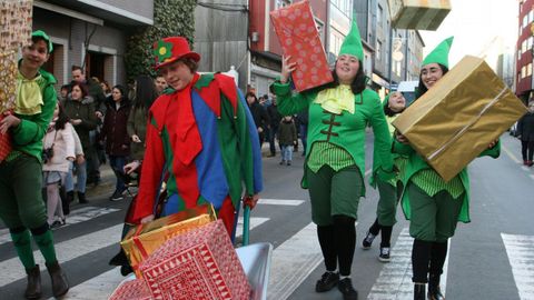 Más acompañados que nunca estuvieron en Negreira, junto a personajes de Disney, elfos, zancudos, muñecos con luces, gaiteiros, la banda municipal o los Xigantes de Liñaio. La fiesta terminó en el pabellón escolar, con espectáculo pirotécnico incluido. Y, en Santa Comba, la avenida Alfonso Molina fue invadida literalmente por el numeroso público que siguió la cabalgata, de las más concurridas, la cual tuvo como colofón la recreación de la adoración al niño Jesús y una fiesta.