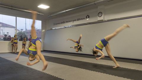 «Es una disciplina artístico-deportiva donde se mezcla la flexibilidad, el baile, el salto, la fuerza, el equilibrio y donde ganan peso las acrobacias, tanto las no voladas, es decir, las que mantienen un punto de apoyo en contacto con la superficie, como las voladas, como pueden ser los mortales. Es un ejercicio muy completo, en el que los alumnos ven rápido su mejoría; es un espectáculo dinámico, con música moderna, que atrapa a los jóvenes con una diversión constante. Eso sí, en Ames, los menores también engancharon a sus padres, y ya impartimos clases a muchos adultos. Hoy en día tenemos cinco grupos diarios y la escuela sumó dos profesores más. Desde el inicio la acogida, también por el boca a boca, fue muy buena», señala, y confirma que sus expectativas iniciales quedaron superadas, también en la parte competitiva.