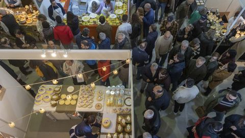 La variada oferta, incluso antes de llegar al recinto, ya permitía disfrutar de un buen café con tarta de queso de Arzúa clásica, de castaña y de pistacho, que ofrecía la firma coruñesa Aruba. Nada más traspasar la puerta, en el centro del espacio, la organización ofrecía información, folletos y recuerdos, rodeados de más y más puestos de más de setenta queserías, algunas muy veteranas, que repiten porque, «en Arzúa siempre nos va muy bien». La misma valoración trascendió el recinto para desparramarse, al igual que el queso arzuano, por los diferentes puestos de artesanía. Tanto los que acudieron bajo el paraguas de la Diputación como los que no, reconocieron por igual el buen resultado de la fiesta especialmente bendecida por un sol tan radiante y amarillo como muchos tipos de queso.