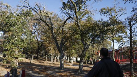 El informe municipal analizó once árboles de los 52 carballos del recinto de Santa Minia. Y seis (uno de ellos en la imagen) están heridos de muerte. Averiguar la incidencia de la armillaria medea en el resto de la carballeira es un proyecto que está en la hoja de ruta del Concello. La sospecha es que los árboles del perímetro estén en peor estado que los de la parte central.