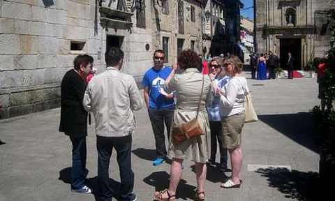 Ella y Xurxo Broz -ambos arqueólogos- guiaron el viaje en la máquina del tiempo. «Hai que botarlle imaxinación», decía. Y tanto que sí. A los pies de la cuesta que sube al lugar de O Castelo -el nombre es lo único que sobrevivió al paso del tiempo y a la mano del hombre- estaba la entrada principal a la fortificación. Era una propiedad también amurallada que se erigía como un obstáculo para que el Camino Francés discurriese por donde lo hace ahora oficialmente, por la rúa Principal, que, como tal, albergaba «toda a actividade gremial e artesanal». Por eso no es casualidad que allí también estuviesen la Casa de las Balanzas, donde se regulaba el peso de las mercancías, y la Casa de la Sal, que era la moneda de cambio de la época. También la Casa del Temple, como se llamaba la orden de guardianes del Camino.