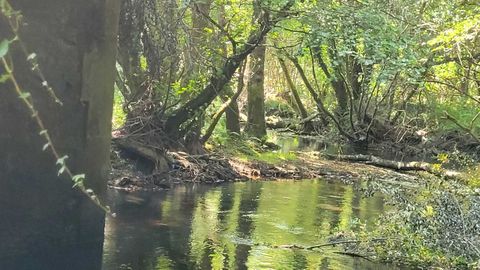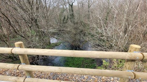Pero no es ese nacimiento el que posee encanto, sino su desembocadura en el Lengüelle, a su vez afluente del Tambre al que rinde sus aguas en las cercanías de Sigüeiro. Ahí, en el final, ese humilde río de sonoro topónimo ya muestra un respetable caudal gracias a que recibe las aguas del Rego do Valado no muy lejos del final. Incluso con la sequía de este verano corrían aquellas con cierta alegría, aunque a uno y otro lado se veían zonas que en invierno están encharcadas y en esos momentos distaban mucho de estarlo. Claro que quién lo diría, porque con la que está cayendo aquello parece más una laguna que otra cosa, desbordadas las riberas.