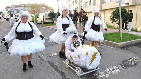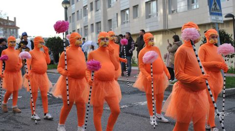 Sigüeiro acogió el sábado un espectacular desfile que llenó de colorido las calles de la localidad. Hasta acompañó el sol, pese a que un grupo iba disfrazado con el lema «Se chove que chova», pero las nubes blancas que lo acompañaban no descargaron y los paraguas fueron, por un día, solo un adorno. El pabellón se llenó para ver las evoluciones de los grupos sobre la pista deportiva, antes de una entrega de premios con un alcalde convertido en Super Héroe. También Melide y Frades acogieron vistosos desfiles con todo tipo de disfraces. En el pabellón de Ponte Carreira (Frades) se congregaron más de 700 personas la noche del domingo para seguir el desfile, con un concurso de disfraces que repartió 1.200 euros en premios entre la veintena de participantes en las distintas categorías. Los 300 euros del primer premio de la categoría general de grupo viajaron a Santiago con Elfa da Flor Eterna, una treintena de mujeres con vestidos muy elaborados y divertida coreografía de baile. El premio especial del Concello de Frades fue a A granxa de Frades; la categoría de adultos se completó con el premio individual a la Locomotora dos anos 50 (Trazo); en la categoría grupo infantil, los ganadores fueron un año más un grupo del CPI de Ponte Carreira, esta vez de 2º da ESO, por O pobo durme. En categoría individual, ganó Alienígenas con glamour (Frades), reparto de folleto informativo incluido.