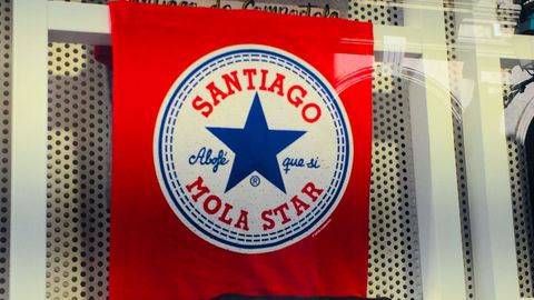 Aunque «el imán es, con diferencia, el recuerdo que más se llevan los turistas», dice una dependienta de una tienda de la rúa do Vilar, la camiseta con el logo de Levis que arrasa entre los jóvenes se ha customizado en el mundo del suvenir, con el nombre de la capital gallega sobre el característico fondo rojo. «Es la que tiene mejor salida», confirma la vendedora. Y basta darse una vuelta por el casco monumental para comprobarlo.