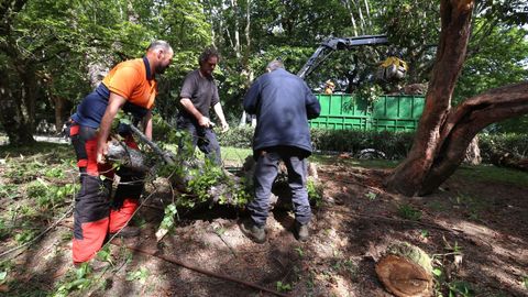 01 may 2023 . Actualizado a las 12:56 h.Un árbol se desplomó de madrugada en la Alameda de Santiago. Fue alrededor de la 1.40 horas cuando un viejo chopo, cercano al palco de la música de la alameda, se partió y se cayó en esa zona, indican fuentes municipales. Añaden que la caída del árbol no causó daños personales y tampoco afectó de forma relevante al entorno. Personal de Cespa, la empresa concesionaria del servicio de mantenimiento de parques y jardines del Concello compostelano, y del área municipal de parques y jardines, se personó en la zona a primeras horas de la mañana de hoy lunes 1 de mayo, para proceder a las tareas de retirada de los restos vegetales. Unas labores ya muy avanzadas a las 10.30 horas, para dejar la zona completamente despejada de los ramajes y tronco del árbol caído.