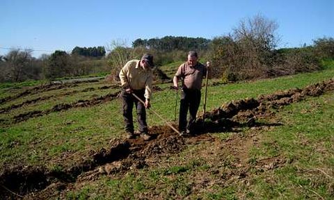 En una parcela pública situada al paso de la carretera que discurre por ese núcleo parroquial concluyeron ayer dos operarios la plantación de castaños después de poco más de un mes de faena. «Plantamos unha variedade temprana, outra tardía e unha castaña grande que hai intermedia», cuenta Ricardo Nouche, uno de los trabajadores, quien también explica que «todas as variedades son autóctonas pero melloradas; son resistentes ás enfermidades que, como a tinta, normalmente aquí en Galicia viñan secando o castaño». Apunta consultando con su compañero Antonio Carneiro que «en tres ou catro anos, máis ou menos, empezarán a dar castañas». La primera recogida «depende moito do terreo». Si es bueno, «adelanta un pouco máis a produción e se é un terreo máis cativo, atrasa sempre un pouco», afirma con lógica. ¿Y cómo es el terreno en el que se plantaron los castaños en Santiso? Comenta Ricardo Nouche que en las siete fincas revalorizadas con la plantación «hai algo de todo, algunha finca que é moi boa e outras que non son tanto, pero é un terreo bastante bo para o castaño».