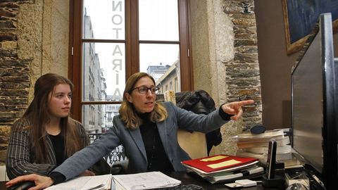 Combatir toda esa distorsión es la misión de la notaria que arrancó su despacho en Lugo en el 2008, que tendrá apenas unas horas para que Jennifer Fernández se empape de las cosas que hace. Desde primera hora de la mañana hasta las dos de la tarde, la alumna del Lucus Augusti se sienta al lado de Natalia Nieto y escucha con atención. «Vamos sobre la marcha con cosas que me van entrando, antes miramos una póliza y ahora estábamos con una escritura. Quiero que aprenda muchas cosas, pero la idea es que se lleve una idea general de lo que puede suponer esta salida profesional», dice Nieto mirando hacia su alumna.