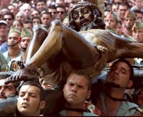 He de confesar que cuando era pequeña la Semana Santa me daba miedo. Más que miedo, me aterrorizaba. Ya saben: los tambores y los ojos de los capuchones, (paparrones o costaleros, como los quieran llamar) y ese caminar casi marcial me ponían pálida. Ahora, bastante más crecidita, lo que me sigue impresionando son los rostros, pero no de los capuchones, sino de las imágenes que muestran dolor o tristeza, ¡en madera! Puro arte salido de manos envidiables. Y para que vean que no exagero, en esta página tienen una prueba. Es el Cristo de la Buena Muerte, que ayer salió en procesión a hombros de los legionarios (es su patrón) en Málaga. No empiecen ya a pensar que Alba es una de esas que solo piensan en la Semana Santa andaluza. Pues no. Me considero una fiel seguidora de las procesiones gallegas y admiradora de las leonesas. Este año, con tan poco tiempo libre se me acumulan los planes, pero ya tengo pensado pasarme, al menos, por tres procesiones: Astorga, Ferrol y Viveiro. De hecho, mientras escribo estoy casi con un pie en el coche para salir pitando hacia León. Por desgracia ya no llego a la de Genarín, la procesión nocturna y profana en honor a ese leonés bebedor, pendenciero y borrachín. Como imaginan, en ella el buen ambiente está garantizado. Pero sí llego a Astorga a ver la carrera de San Juanín. Sí, como lo leen, la carrera, no es una exageración. Cuatro costaleros hacen algo parecido a los cien metros lisos con San Juan niño a hombros. Por mucho que les diga, hay que verlo. Y como gallega, aunque haga una incursión leonesa, con cocido maragato incluido, no me pierdo parte del día grande en Ferrol. Ver a algunos amigos que son cofrades es una buena excusa para divertirse, aunque sea en la semana de pasión, ¿verdad? Página en Internet: