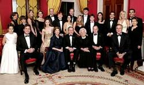 padre y su esposa Bárbara celebraron con todos sus hijos sus 60 años de matrimonio. Entre otras cosas posaron para la foto de familia que les traigo, en la que ocupa un lugar importante (más que los homenajeados) el hijo y presidente de los Estados Unidos, George W. Bush , acompañado de su mujer, Laura . Lo que más ha llamado la atención son las botas del presidente, esas camperas tan adecuadas para el esmoquín ya merecen un comentario. Pero lo mejor es el dibujo que corona esas botas, el águila del Gran Escudo de Estados Unidos. Es como si tuviese la alfombra del despacho oval en las espinillas. Por cierto, la familia presidencial tiene una nueva mascota, un monísimo terrier escocés de apenas dos meses que responde al nombre de Miss Beazley , y que le regaló Bush a Laura por su cumpleaños, el pasado mes de noviembre. Una que podrá hacerse muchos regalos es Madonna , ya que la cantante ha firmado un contrato con la firma de alta costura Versace para una campaña publicitaria. La artista aparecerá vestida de oficinista en unas pocas fotos y cobrará 15 millones de euros por ello, una nadería como ven. Lo mejor es que la ambición rubia es tan buena clienta de la firma que, quién sabe, a lo mejor se vuelve a gastar el dinero en las tiendas de Milán. En las antípodas de Madonna parecen estar los hijos de Carlos de Inglaterra y Diana de Gales . Guillermo y Enrique han estado trabajando estos días para la Cruz Roja en Bristol, haciendo paquetes de ayuda para las víctimas del tsunami asiático. En concreto, el material se enviará a las Maldivas, en el Índico, y aunque la cosa tiene bastante de publicitario, lo cierto es que a los jóvenes se les veía esforzados en su labor. Lógicamente, el maremoto no les dejó indiferentes. Aunque acaba de ser madre de gemelos, Julia Roberts no pierde oportunidad de ampliar su gran patrimonio y por eso se ha agenciado un terreno del secretario de Defensa de Estados Unidos, Donald Rumsfeld . Nadie sabe lo que ha pagado la actriz por la finquita, situada en el condado de Taos, en Nuevo México, pero uno ya se puede imaginar que barata no fue. En total, Julia Roberts ha comprado varias casas y siete terrenos -unas 13 hectáreas- en el entorno de su rancho, para ampliarlo. El lugar donde vive Roberts se denomina Des Montes, como una villa cercana, que fue fundada por el español Hernando de Alvarado -seguramente hermano del guapo pero torpe capitán de Cortés , Pedro - y desde hace años acoge a ricos de todo el país que buscan tranquilidad.
