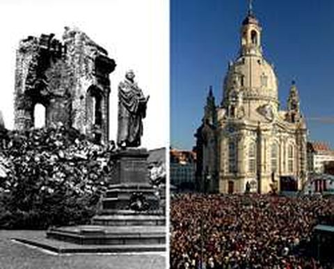 Crónica | Reconstrucción del templo alemán El edificio, destruido por los bombardeos aliados en la II Guerra Mundial, fue ayer de nuevo consagrado ante miles de alemanes que acudieron a la cita
