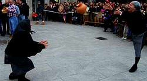 ? los vecinos de Xinzo de Limia (Ourense) el tiempo que queda para el carnaval les parece una eternidad. Pero para entretener la espera de la fiesta más importante del año tienen sus propias tradiciones. El calendario marcaba ayer una fecha importante en el ciclo carnavalero más largo del país. Se celebraba el domingo oleiro , un día dedicado al juego en el que los limianos no pierden la oportunidad de disfrazarse. Los participantes dedican parte de la tarde a lanzarse olas, vasijas de barro, cocidas especialmente para la ocasión en los hornos de Niñodaguia. Es fácil imaginarlo: todas acaban en el suelo, hechas añicos. Las olas tienen sorpresa. Algunas contienen harina -como la que tiñó de blanco Xinzo la pasada semana, con motivo del domingo fareleiro- y otras confeti. Centenares de personas disfrutaron del espectáculo mientras contaban los días: sólo queda el domingo corredoiro para que llegue el carnaval.