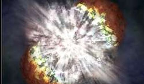 08 may 2007 . Actualizado a las 07:00 h.Una gigantesca explosión destruyó una estrella unas 150 veces más grande que el Sol en una galaxia relativamente cercana, según explicaron ayer los astrónomos que la describieron como la supernova más poderosa y brillante jamás vista. Existe una estrella similar en la Vía Láctea que parece estar a punto de morir, tal como esta supernova a la que se refieren los expertos. La muerte del astro puede haber sucedido como un tipo raro de supernova, reservado para estrellas peculiarmente grandes, una situación con la que los astrónomos habían especulado, pero que no habían llegado a presenciar. La supernova, nombrada SN 2006gy, se registró a 240 millones de años luz de distancia de la Tierra, en la galaxia NGC 1260, y se ha estudiado usando el observatorio en órbita de la NASA, Chandra, y telescopios instalados en la Tierra. El estallido ocurrió hace mucho tiempo, pero fue detectado el año pasado, después de que sus luces viajasen varios billones de kilómetros antes de poder ser observadas desde la Tierra. «Eso suena muy lejano, pero realmente es bastante cerca en la vastedad del universo», dijo el líder de la investigación, el astrónomo Nathan Smith, de la Universidad de California, en Berkley.