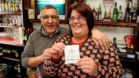 Entre todos los grovenses con algo que celebrar, Pepe y Belén destacaban. «Ela, ela -se desentendía él- que foi a quen lle tocou». Acodada en la barra de la taberna de su pareja, Casa Pepe, ella sonríe primero y de repente se le llenan los ojos de lágrimas. «Es que estoy alucinada, aún no me lo creo». Reside habitualmente en Marín, donde trabaja para una empresa de limpieza. «Con cien mil euros no puedo dejar de trabajar, pero voy a vivir con más desahogo», confiesa feliz una mujer que siempre ha probado suerte con los juegos de azar y nunca le había tocado nada. Pero todos los décimos que tenía esta vez eran de O Grove. Y a la fortuna, que visitó la península meca en un tercer premio de la Navidad, le apetecía volver.