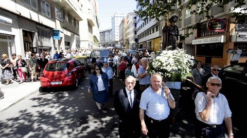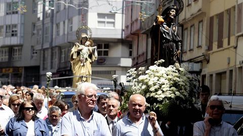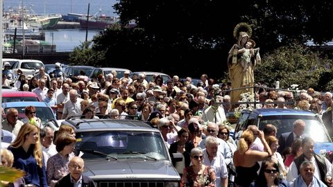 La procesión salió acompañada por gaitas, bombas de palenque y ruido de sirenas, pero al Playa de Traba en el que viajaba la imagen se le calentó el motor cuando estaba llegando a Muxía. Así que a su patrón, Juan Carlos Campaña Carril, no le quedó otra que apagar y solicitar auxilio, no del divino, sino humano.