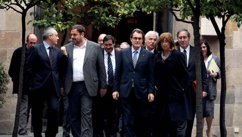 El encuentro convocado por Mas aprueba una declaración conjunta de los partidos catalanes, excepto PPC y Ciutadans, y el Consejo Escolar a favor del modelo de inmersión lingüística