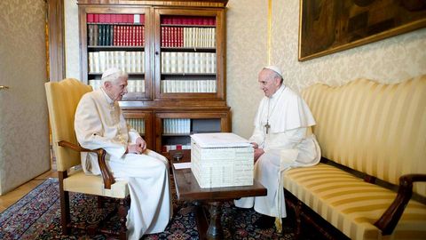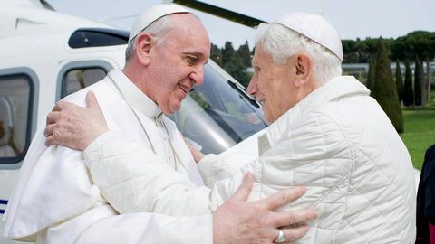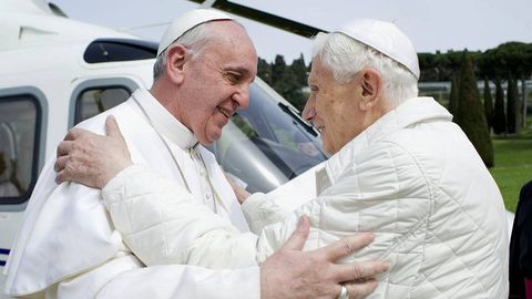El papa Francisco visita a Benedicto XVI en Castel Gandolfo. Es la primera vez en la historia en la que un papa emérito y otro en plenos poderes se reúnen