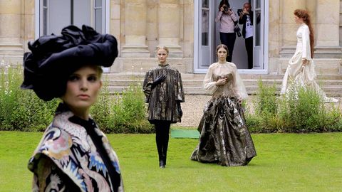 La pasarela de Sorbier -que se celebró en los hermosos jardines de la Embajada de Suiza en París, que despedían un suave aroma a rosas- llevó a sus invitados al Medioevo.