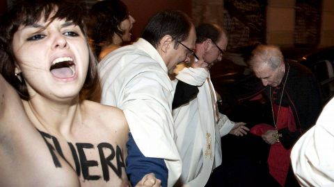 El incidente se ha producido en torno a las 20:00 horas durante el breve recorrido entre el vehículo en el que se desplazó el cardenal y la entrada del templo, momento que aprovecharon las cinco activistas para lanzar a Rouco varias bragas manchadas de rojo.