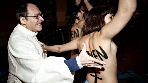 La protesta de Femen tiene lugar un día después de que miles de personas se manifestaran en Madrid contra el anteproyecto de protección de la vida del concebido y de los derechos de la mujer embarazada. El ministro de Justicia, impulsor de la reforma, dio ayer su «palabra», en la convención nacional del PP, de que ningún insulto o grito le hará abdicar de su compromiso con el presidente del Gobierno de cumplir el programa electoral y regular y garantizar los derechos de la mujeres, pero también de los concebidos y no nacidos.