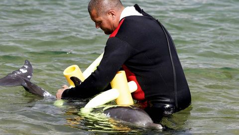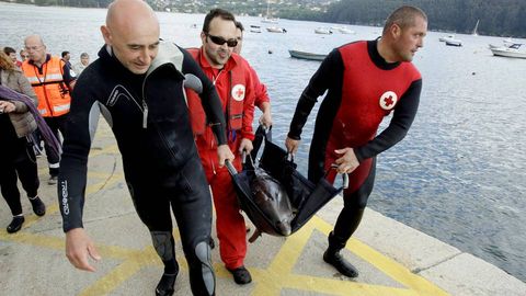 El cetáceo fue trasladado de Valdoviño a Cedeira para reintroducirlo en barco