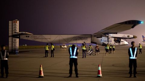«Estoy listo para lo desconocido, no estoy seguro de cómo se comportará el avión durante tantos días y noches», dijo el piloto. La suerte, considera Borschberg, es fundamental: «Cruzo dedos y espero cruzar el Pacífico. Tenemos una buena perspectiva meteorológica»; transcurridas nueves horas desde su salida de Nankín, el avión entraba en el espacio aéreo surcoreano y sobrevolaba el mar de China oriental.