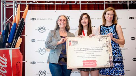 02 jun 2015 . Actualizado a las 05:00 h.Sofía Santos Ulloa (centro), del IES Lucus Augusti (Lugo), es la ganadora del Concurso Coca-Cola Jóvenes Talentos de Relato Corto en Galicia. De los 760 jóvenes de 2.º de la ESO, hubo varios finalistas: Ana Cabezas (Salesianos, A Coruña), Miguel Francisco Vidal (Santa Juana de Lestonnac, Ferrol), Isabel Castro (La Salle, Santiago), Sara Faro (IES Salvaterra de Miño, Vigo) y Teresa Ordás (Colegio Los Sauces, Pontevedra) y Lara Rodríguez (Santo Ángel, Ourense).