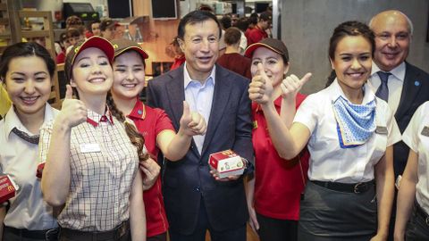 El primer McDonald's kazajo abrió sus puertas tras la visita ayer del presidente de la nación, Nursultán Nazarbáyev. El Gobierno espera que este restaurante inspire confianza a los inversores en Kazajistán. «Antes de aventurarse a un nuevo mercado, los inversores exploran las grandes marcas mundiales que apuestan por Kazajistán y McDonald's está en esa lista. Así, los inversores podrán palpar el potencial de nuestro mercado, el poder adquisitivo de nuestros ciudadanos y la situación económica de nuestro país», declaró Dauren Abaev, jefe de prensa de Nazarbáyev durante la visita del presidente.