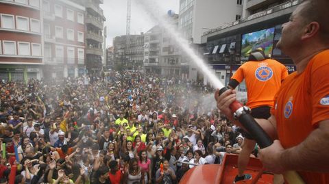Vilagarcía de Arousa. La capital arousana vive el San Roque de manera singular, con una tromba de gente y de agua y mucha juventud que pide a gritos por la calle ser calmada su sed con el líquido elemento.
