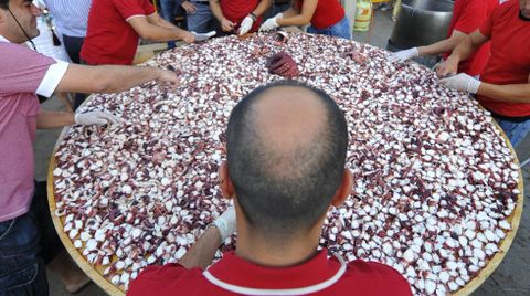 O Carballiño. El fin de semana esta localidad ourensana celebra una multitudinaria comilona en torno al rey de los cefalópodos. Y lo hace tras batir el récord de la mayor tapa de pulpo del mundo.
