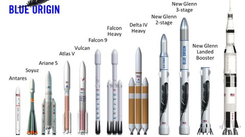 El cohete es nombrado en honor a John Glenn, el primer estadounidense en orbitar la Tierra. El propulsor es reutilizable y podría regresar a la Tierra después de que la nave se despliegue y separe de otros componentes del cohete.