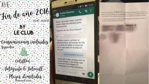 La fiesta empezaba a las 0.30 horas. «En cuanto supe que no abría el local me presenté para intentar solucionar el tema», indica Martínez. «Llamé a Rubén [se refiere al dueño de Leclub] y me dice que le acerque el dinero a Laracha. Le dije que se lo llevaba pero, desde esa, no me cogió el teléfono más».