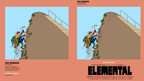 21 abr 2018 . Actualizado a las 20:53 h.La semana pasada los dibujantes de La Voz Pinto & Chinto debutaron en el mundo de las diferencias con una ilustración en la que se sumergían en los fondos marinos. Este domingo probarán a escalar una montaña. Y aunque algunos de los retos que les ofrecen los pasatiempos de Elemental puedan parecerles tan complicados como escalar el Everest, no tiren la toalla. Denle vueltas a la cabeza, mejoren poco a poco su técnica y no se rindan hasta hallar la solución. En caso de que no logren resolver algún juego porque se les atasca alguna palabra o porque no hallan el número correcto para completar un sudoku, pueden recurrir al comodín de buscar en las páginas donde aparecen las soluciones. No tendrán que esperar una semana para saber cuáles son porque están en la parte final del mismo número.