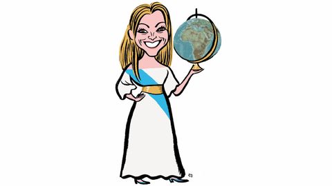 A actriz e produtora aparece vestida de branco, cuns ollos que abre moito e un sorriso tan poderoso como o que se ve na televisión