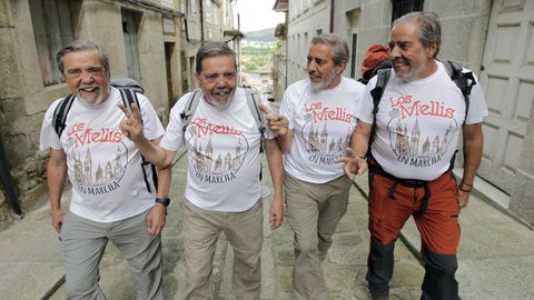 El viaje lo empiezan hoy y en el primer trayecto completarán 32 kilómetros hasta Redondela. De allí caminarán mañana hasta Pontevedra, de Pontevedra llegarán a Caldas de Reis el jueves, de allí a Padrón el viernes y de Padrón a Santiago, el sábado, 8 de junio. De esta forma completarán el tramo del Camino Portugués, un itinerario consolidado que se suma al que va por la costa, cada día más de moda, creciendo de forma exponencial el número de peregrinos que eligen esta ruta. Los cuatro hermanos ya hicieron algún tramo del Camino alguna vez en el pasado, pero por separado. «Juntos es la primera vez que vamos a intentarlo y como ya no somos muy jóvenes no sabemos si es la última vez. Nos hace mucha ilusión aunque vamos un poco averiados», reconoce con humor Conrado, que para celebrarlo, encargó para todos unas camisetas que llevan impreso el lema del equipo: «Los mellis en marcha».