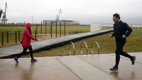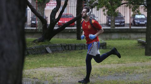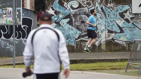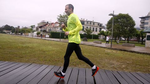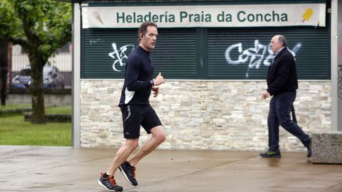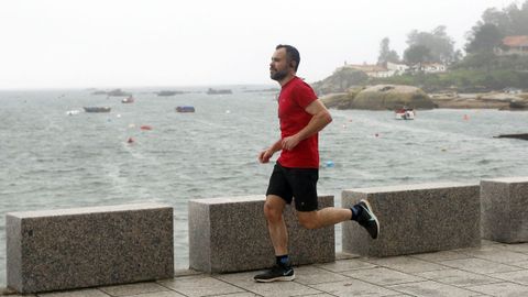 Alberto Nogueira da clase en el instituto Asorey de Cambados, tiene 53 años y vive en Vilagarcía. A las ocho y media se calzó las deportivas y ropa cómoda para sudar. Una hora más tarde, resume la carrera que más se ha hecho de rogar: «Fixen sete kilómetros en 42 minutos, sen presa, a trote borriqueiro, porque do que se trata é de gozar, non de facer ningunha marca». Ni él ni su compañera María se han pasado los últimos cincuenta días cruzados de brazos. Tampoco sus dos chavales, Uxía y Xabi. Suerte de disponer de un pasillo de 22 metros de largo. «Non todos os días, cinco á semana, pero si que fixen algo; corría unha hora, así que me saían máis ou menos os sete quilómetros que acabo de correr pola praia». De la piscina municipal que solía frecuentar no hay noticia, ni es probable que la haya en bastante tiempo. Así que habrá que concentrarse en las zancadas, «polo menos cinco días á semana». El nuevo firme de hormigón, menos duro que la pizarra que todavía muestra un tramo del paseo, se agradece. Incluso el viento de cara, «aínda que te free bastante ao correr».