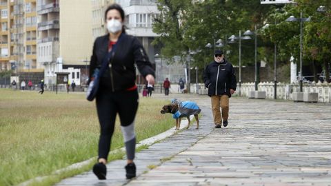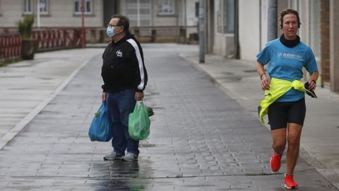 En pareja, siempre con alguien con el que uno conviva, si se trata simplemente de caminar, y únicamente en un radio de un kilómetro. De seis a diez de la mañana y de ocho a once de la noche, si se trata de correr o hacer deporte, siempre dentro del mismo municipio. De 10 a 12 o de 19 a 20 horas en el caso de los mayores de setenta años o las personas con algún tipo de dependencia que necesiten apoyo y deseen pasear. Estas son las condiciones bajo las que los arousanos se echaron a la calle. Mucha gente madrugó, muchísima, como atestiguaba el paseo marítimo que une el centro de Vilagarcía con Carril, y desde las siete recordó aquellos fines de semana anteriores a la pandemia. En todo, salvo por la distancia de seguridad, guardada escrupulosamente entre quienes lo recorrían, bajando a la arena si era preciso, y la profusión de mascarillas.
