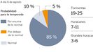 La Agencia del Océano y la Atmósfera de Estados Unidos (NOAA) acaba de actualizar la previsión hasta el 30 de noviembre, cuando termina la temporada. Y si al comienzo de la misma predijo una época «activa» ahora acaba de señalar que lo que resta de temporada será «extremadamente activa». «Las condiciones oceánicas y atmosféricas actuales que hacen posible una temporada de huracanes extremadamente activa son temperaturas de la superficie del mar más cálidas que el promedio en el Atlántico tropical y el Caribe, cizalladura vertical reducida del viento, alisios tropicales más débiles en el Atlántico y un monzón mejorado en África occidental. Se espera que estas condiciones continúen durante los próximos meses», explica Gerry Bell, investigador en Centro de Predicción del Clima de la NOAA.