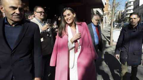 Nada más terminar el acto, la reina, vestida de rosa y blanco, y el director de cine de despidieron con dos besos en la mejilla, como viejos amigos.