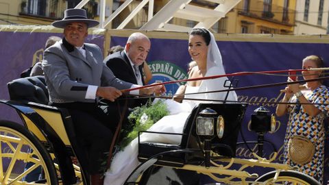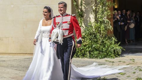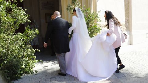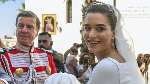 La exclusiva permite ver con más detalle el vestido de la novia, diseñado por Navascués en crep de seda y con bordados alusivos a la Virgen de las Angustias, en recuerdo de Cayetana de Alba, madre del novio. Iba, además, engalanada con una diadema y pendientes art déco, un regalo del novio. Las lecturas de la celebración religiosa corrieron a cargo de Tana Rivera y el duque de Huéscar, Fernando Fitz-James Stuart, sobrinos de Cayetano.