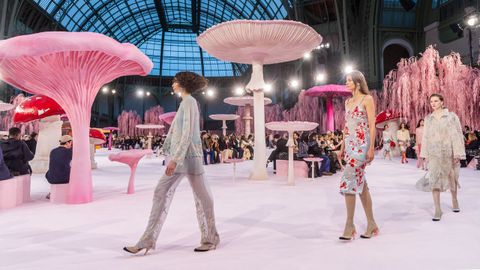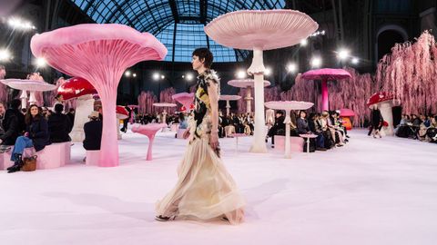 El mundo natural y en concreto las setas de diferentes tamaños y colores han inspirado la colección que Matthieu Blazy ha preparado para Chanel, y que desveló este martes en la segunda jornada de la semana de la alta costura de París, con vestidos y conjuntos dos piezas muy presentes en un desfile, en el que la española Laura Ponte figuró entre las modelos.