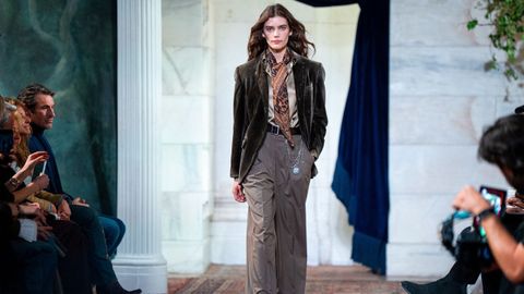 Mientras, Ralph Lauren se adelantó con un desfile ayer martes en el que predominó la elegancia ecuestre, con faldas largas, jerséis de cuello alto, chalecos y americanas en una paleta de dolores marrón, rematados con botas de montar hasta la rodilla y cinturones marcando la cintura. «Me inspira la mujer que lidera con seguridad, una defensora de su individualidad y su estilo personal», indicó Lauren en sus redes sociales sobre la colección.