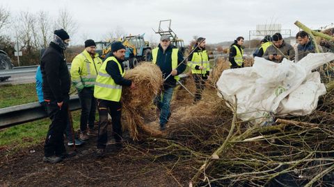 Los agricultores han utilizado de momento leña de las ramas de varios árboles que encontraron en la zona, rulos de paja y también neumáticos para crear hogueras y aseguran que mantendrán la protesta pese a la cada vez más numerosa presencia policial. «A xente está disposta a aguantar o que faga falta», decía uno de los participantes en el bloqueo de la carretera. Mientras, en la ciudad siguen también los vehículos agrícolas rodeando el edificio de la Subdelegación del Gobierno y tres más ocupan la zona de aparcamiento reservado junto al edificio de la delegación de la Xunta.