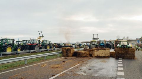 Cortan con tractores la A-52 en Xinzo de Limia en protesta por el acuerdo de Mercosur