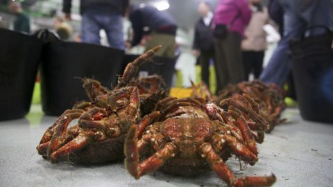 La centolla, en plena temporada, se vendía hace semana y media a precios que iban de los 16 a los 35 euros. Mientras, este viernes andaba por los 30 y 45 euros en la plaza de San Agustín; y a 40 en una pescadería de Ribeira.
