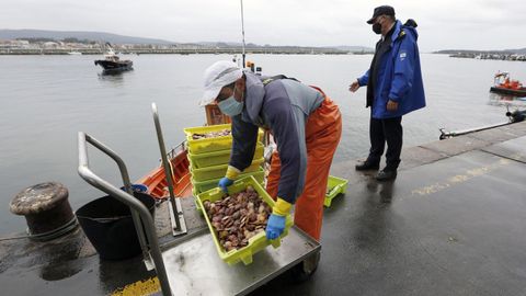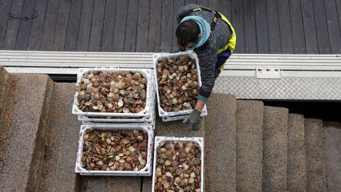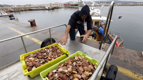 De este último puerto fueron unas 35 embarcaciones las que pusieron a la venta sus capturas en la rula. La volandeira capturada en esta primera jornada sumó 2.894 kilos, que se vendieron a un máximo de 5,10 euros. Sin embargo, esa cotización fue alcanzada por muy pocos lotes, pues la mayor parte del producto era de tamaño pequeño. Así, el precio mínimo cayó hasta 1,10 euros y el medio quedó fijado en 1,78. El patrón mayor de Cambados, Ruperto Costa, confía en que la apertura de nuevas zonas permita a la flota traer a tierra un marisco de mayor tamaño en los próximos días y eleve los precios.