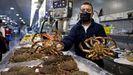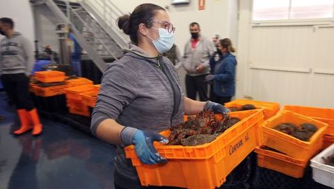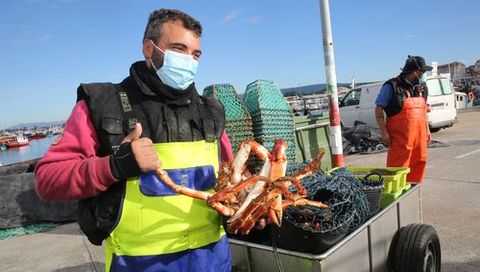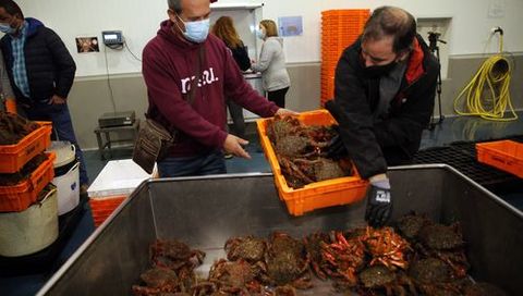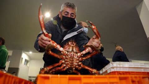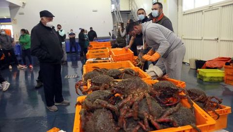 Pinchazo en el debut de la centolla en lonja: precios bajos y «moito farol»