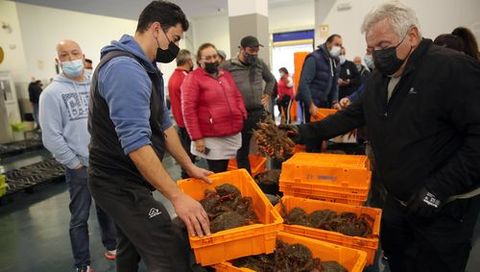 En O Grove, uno de los principales puertos centoleiros, se subastaron 3.399 kilos de este crustáceo, que se vendió a un precio máximo de 24,40 euros el kilo. La cotización media fue de 13,90.